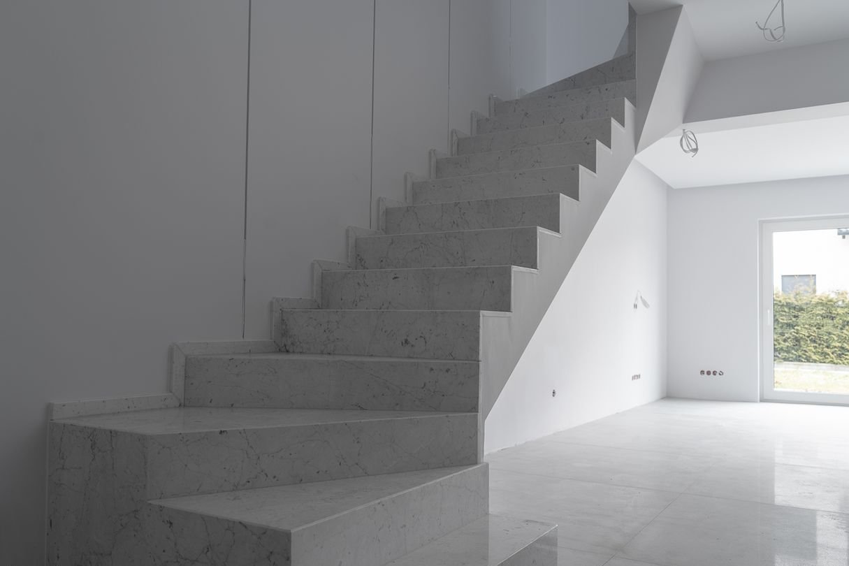 PEREŁKĄ są piękne schody wewnętrzne obłożone 2cm kamieniem Callacatta Viola ,