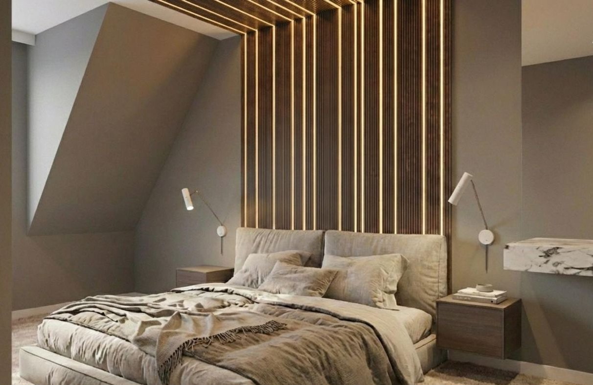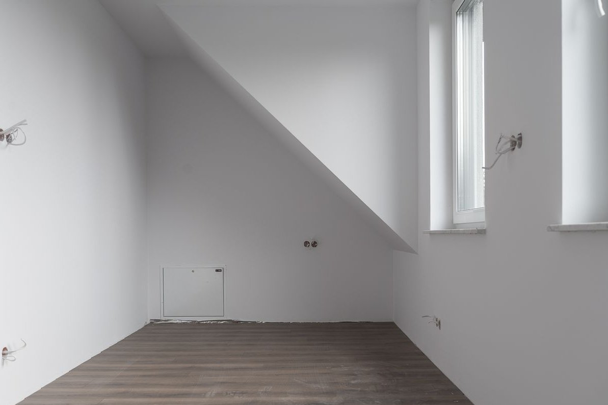 Strych wyłożony panelami i wykończone pomalowane ściany (czysta przestrzeń do zaadaptowania)