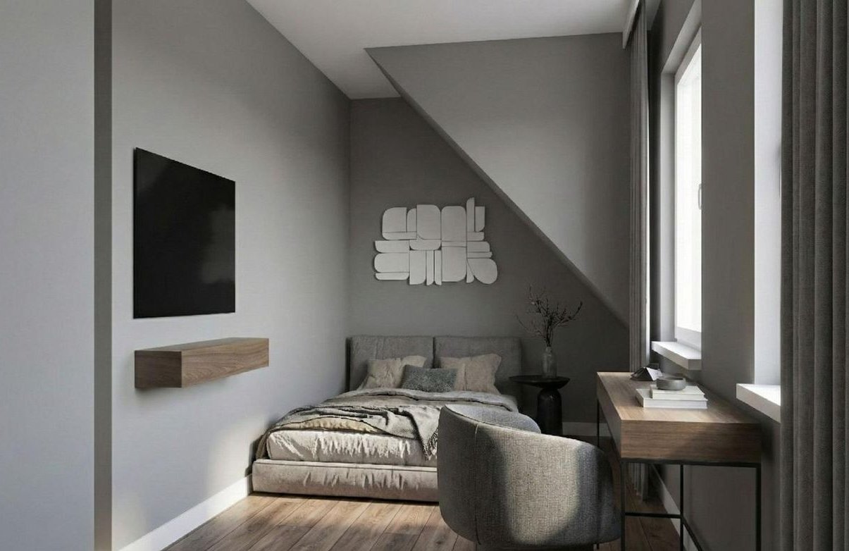 Zmiana układu pokoi na piętrze: główna sypialnia z dużą garderobą, druga sypialnia i łazienka