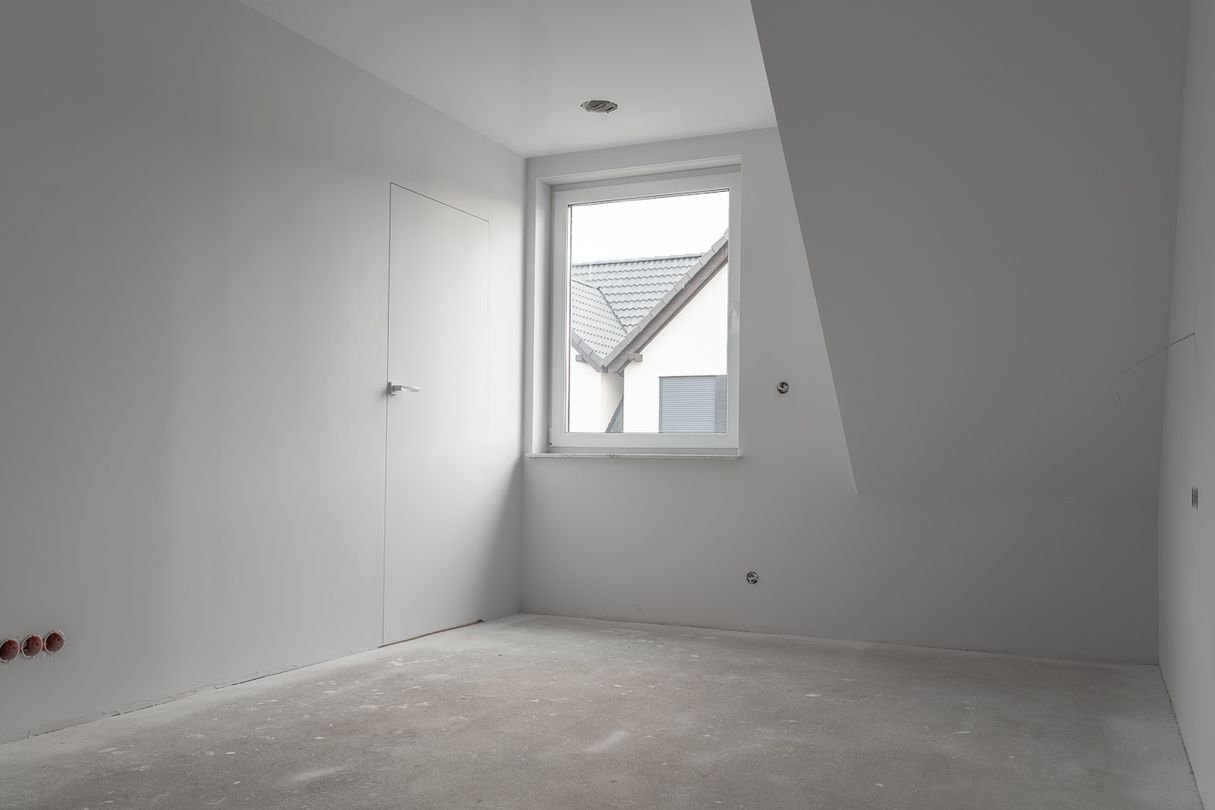 W głównej sypialni zaprojektowano na podłodze wykładzinę – do wykończenia wg. projektu tudzież wg. własnego uznania,