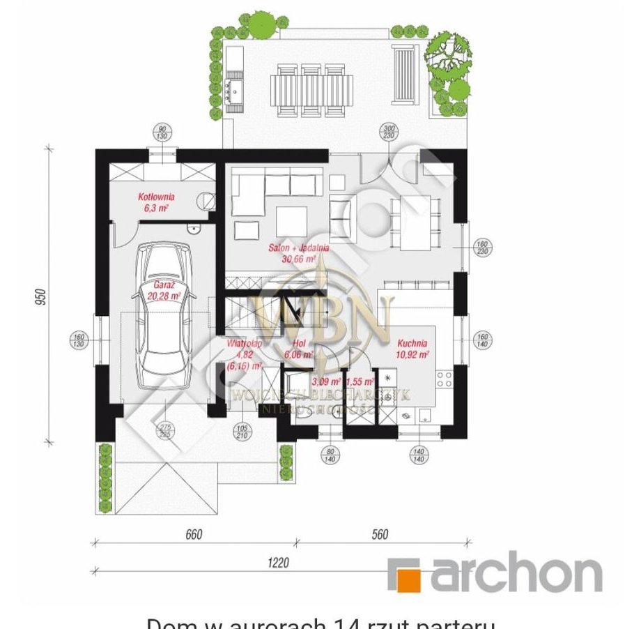 Wnętrze: 3 sypialnie z garderobami, przestronny salon z jadalnią, kuchnia, 2 łazienki + pralnia, pomieszczenie gospodarcze.Przestronna strefa dzienna to miejsce wspólnego wypoczynku mieszkańców domu,Kuchnie uzupełnia zaprojektowana obok pojemna spiżarnia,Strefa Nocna to trzy ustawne i pięknie doświetlone sypialnie, luksusowa łazienka z narożną wanną, prysznicem i dwoma umywalkami oraz pralnia z miejscem na suszenie i przechowywanie.Standard wykończenia: stan deweloperski – gotowy do własnej aranżacji wewnątrz.