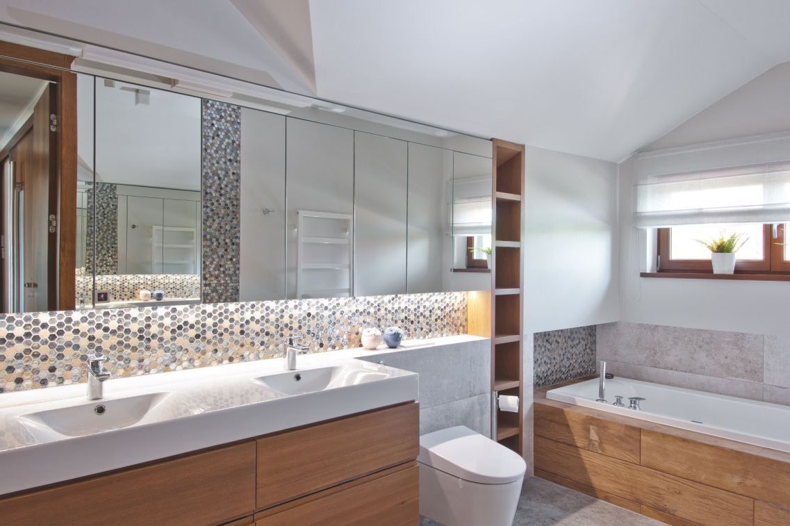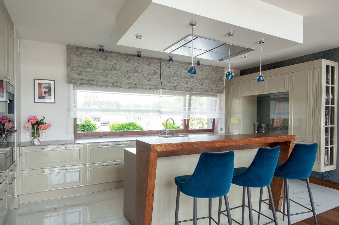 Strefa dzienna otwiera się szeroko na taras i ogród. Salon z kominkiem połączony z wyjściem na taras płynnie łączy wnętrze z otoczeniem. A kuchnia z jadalnią stanowi serce domu - funkcjonalna, z wysokiej jakości sprzętem.