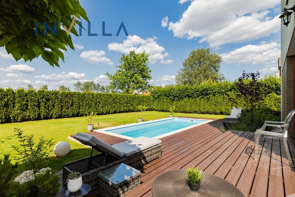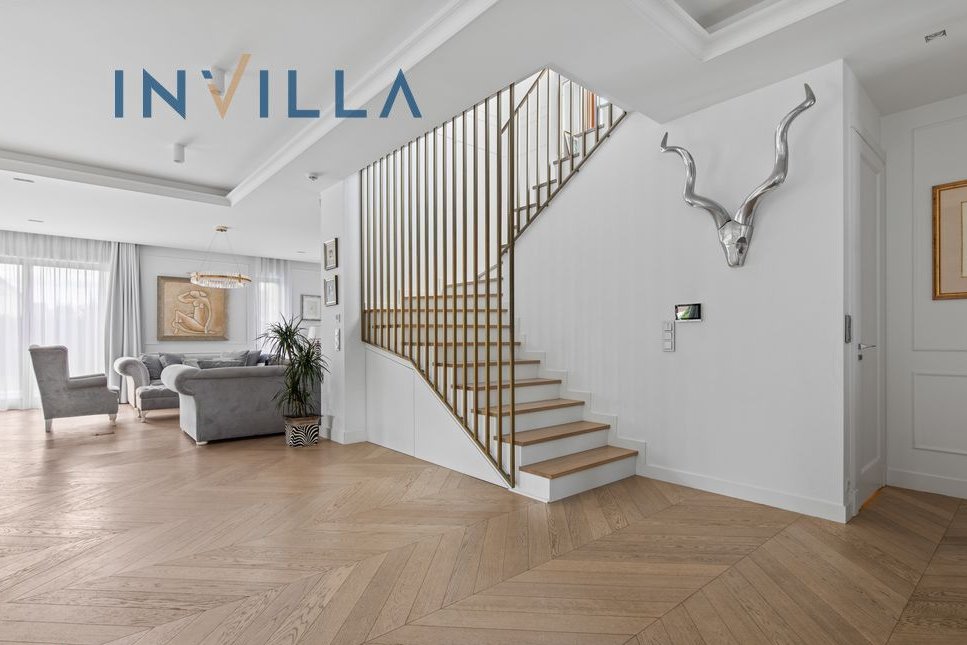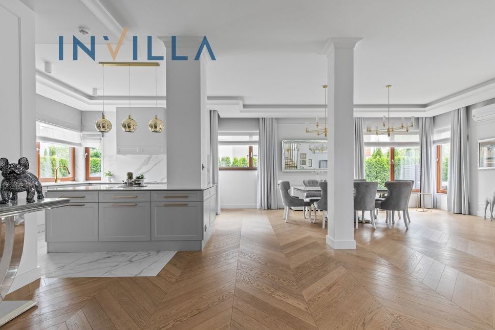 Nieruchomość znajduje się na zamkniętym osiedlu willowym z całodobową ochroną. Wykończony w wysokim standardzie w stylu glamour. Każde pomieszczenie jest klimatyzowane, a podłogi podgrzewane, wykończone wysokiej jakości parkietem. Pięknie zagospodarowany ogród z basenem zewnętrznym podgrzewanym to atut nieruchomości. Zadbana roślinność podświetlana nocą tworzy niesamowity klimat.
