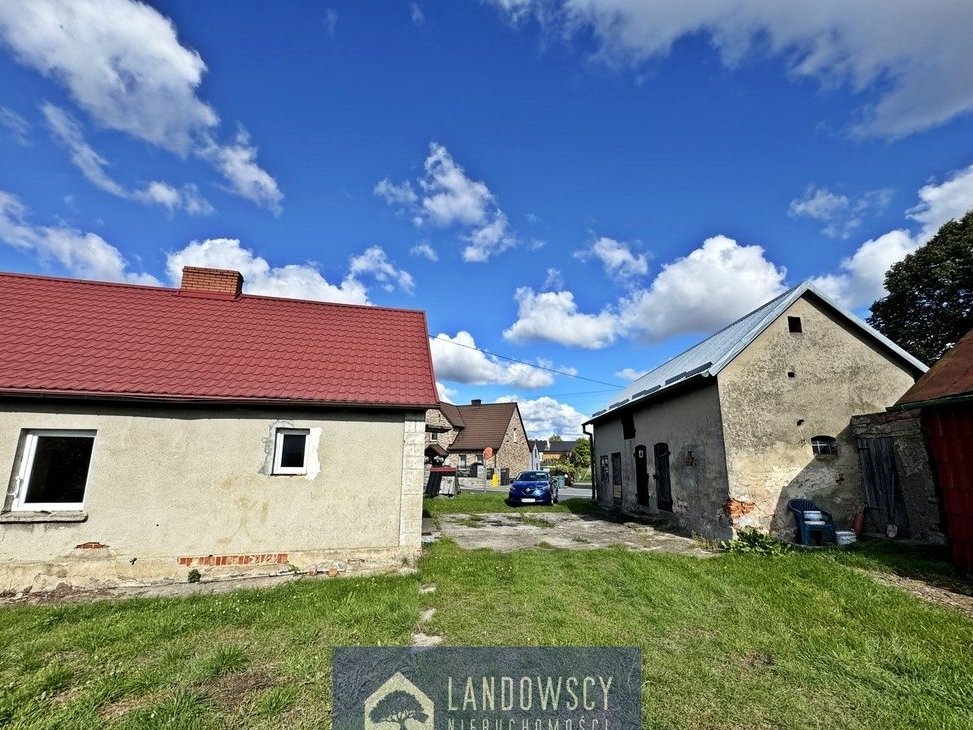 Działka o powierzchni 3400 m2 o nieregularnym kształcie (front o szerokości około 30 metrów; najdłuższy bok o długości około 67 metrów) z wjazdem od strony północnej z drogi asfaltowej. Teren zróżnicowany - częściowo płaski, a częściowo o mocnym nachyleniu w stronę południowym. Na działce dodatkowo znajduje się budynek gospodarczy z cegły, oraz tzw. blaszak.