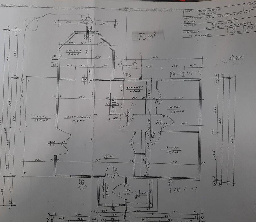 Łączna powierzchnia parteru: 75m2