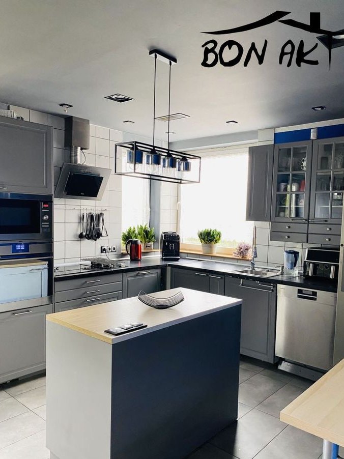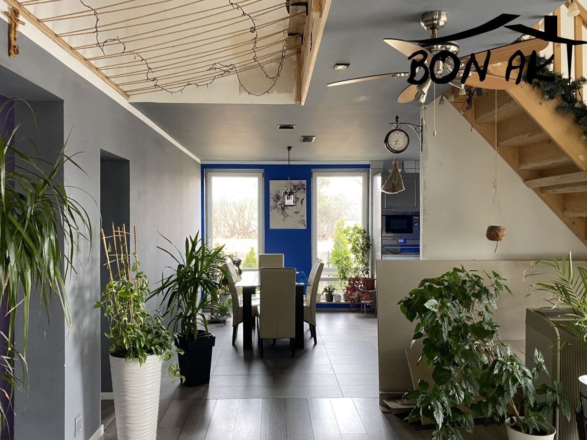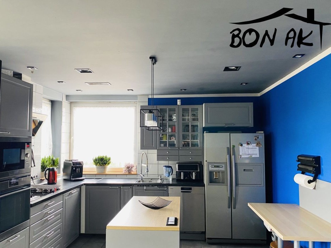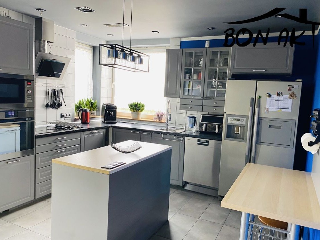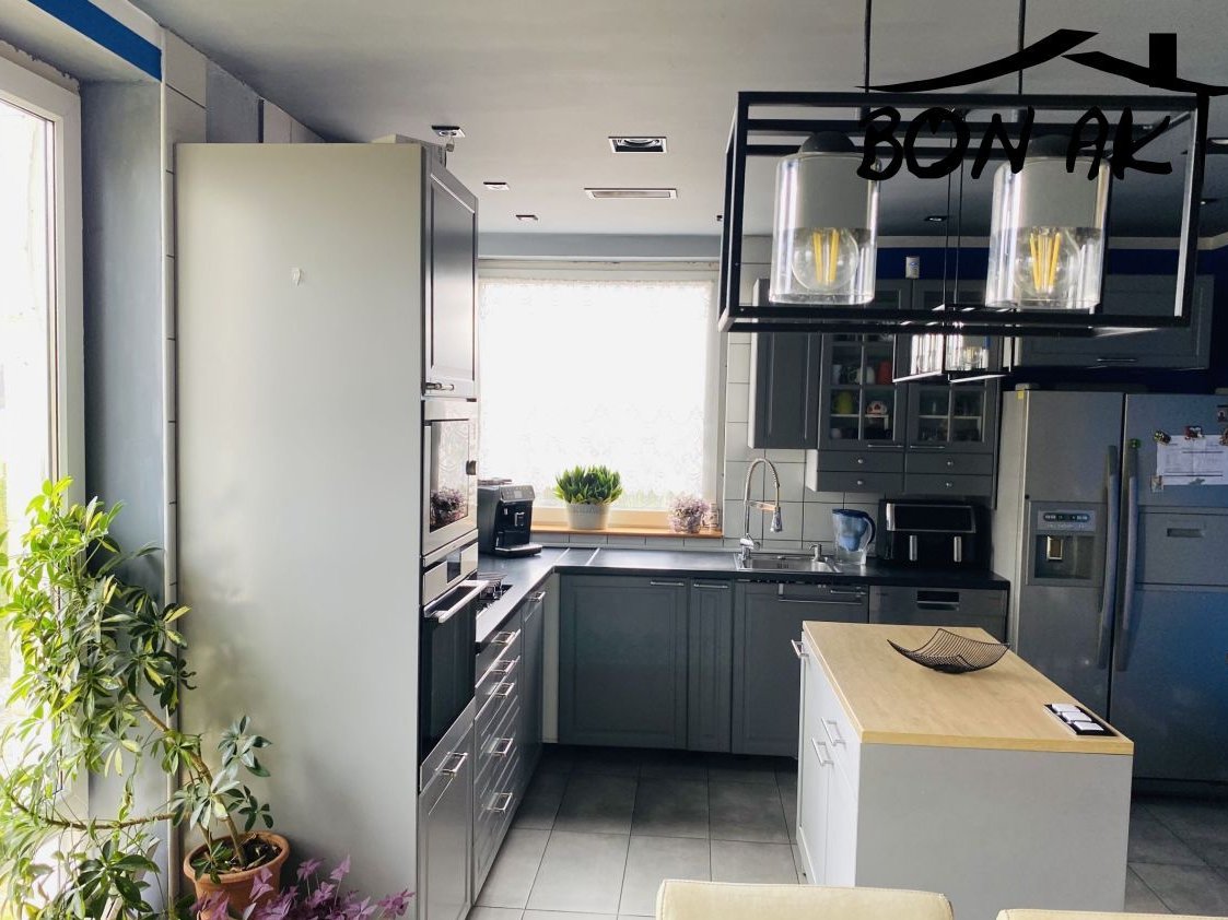 Parter: przestronny salon z wyjściem na ogród, nowoczesna i w pełni umeblowana kuchnia, łazienka, spiżarnia, dodatkowy pokój, pomieszczenie gospodarcze.