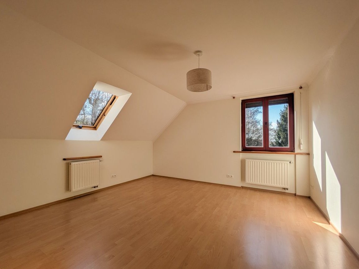 Nad piętrem znajduje się dodatkowo nieocieplony strych o powierzchni ok. 50 m², który można również zaadaptować na pomieszczenia użytkowe np. tworząc dwupoziomowe sypialnie.