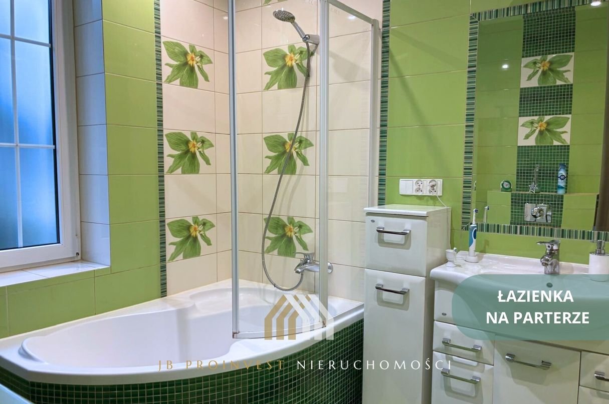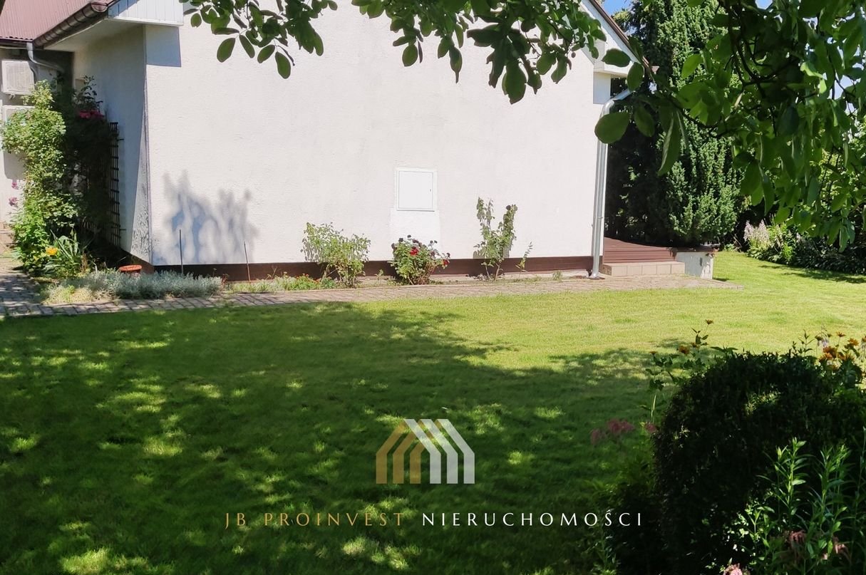Nieruchomość wyróżnia się pięknie zagospodarowanym ogrodem, zapewniającym prywatność i komfort wypoczynku. Liczne nasadzenia drzew i krzewów tworzą naturalną osłonę od sąsiednich posesji. Dom posiada dwa tarasy: