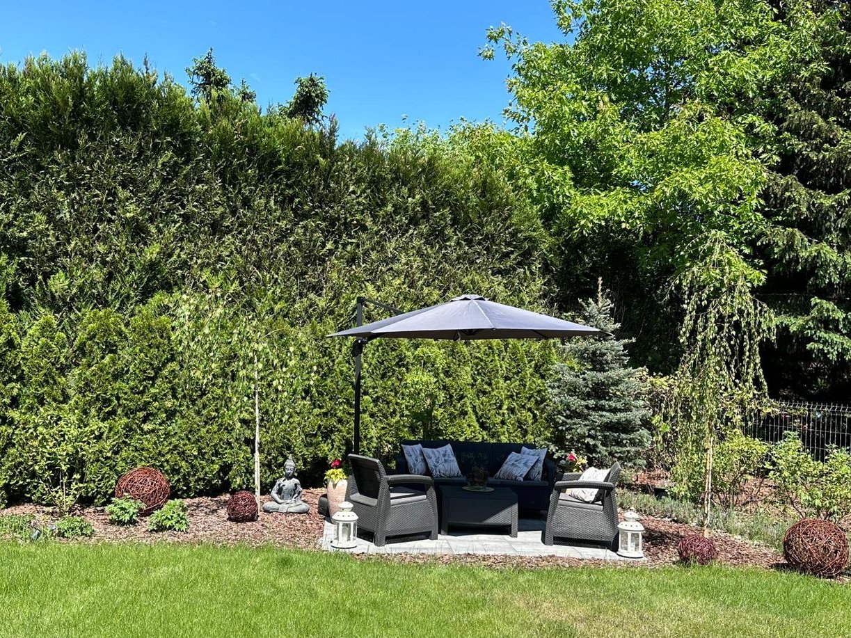 Przepiękny, zadbany ogród z wieloletnimi nasadzeniami drzew i krzewów, z automatycznym systemem nawadniania.