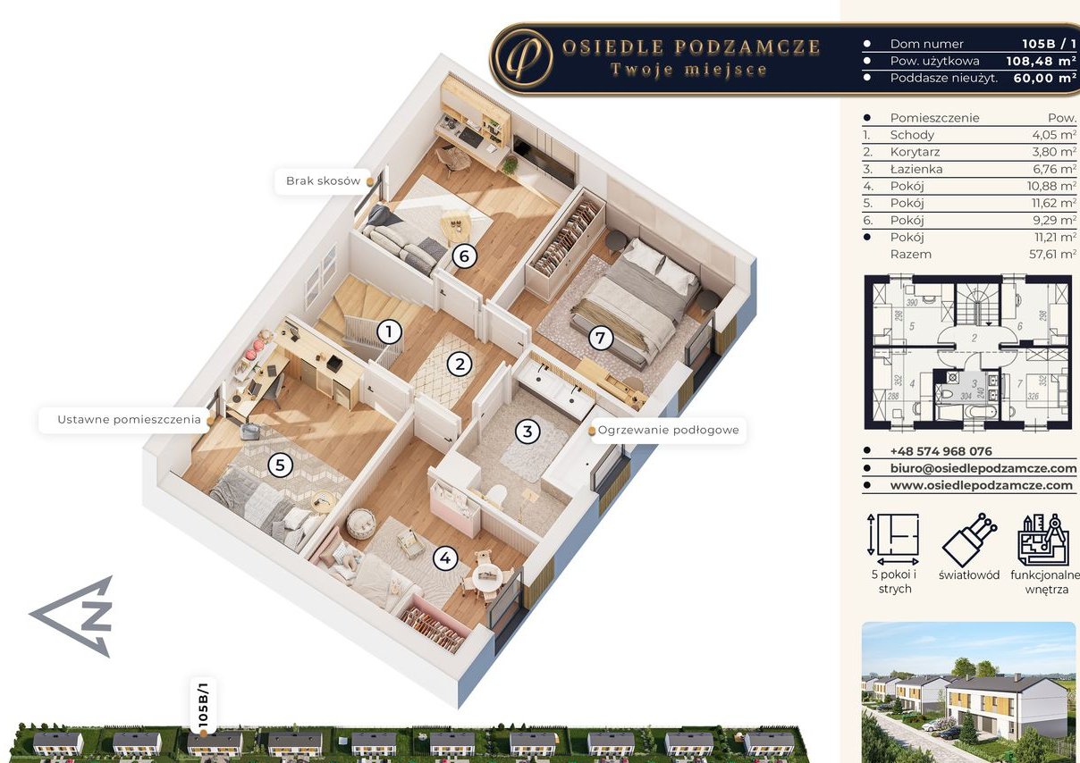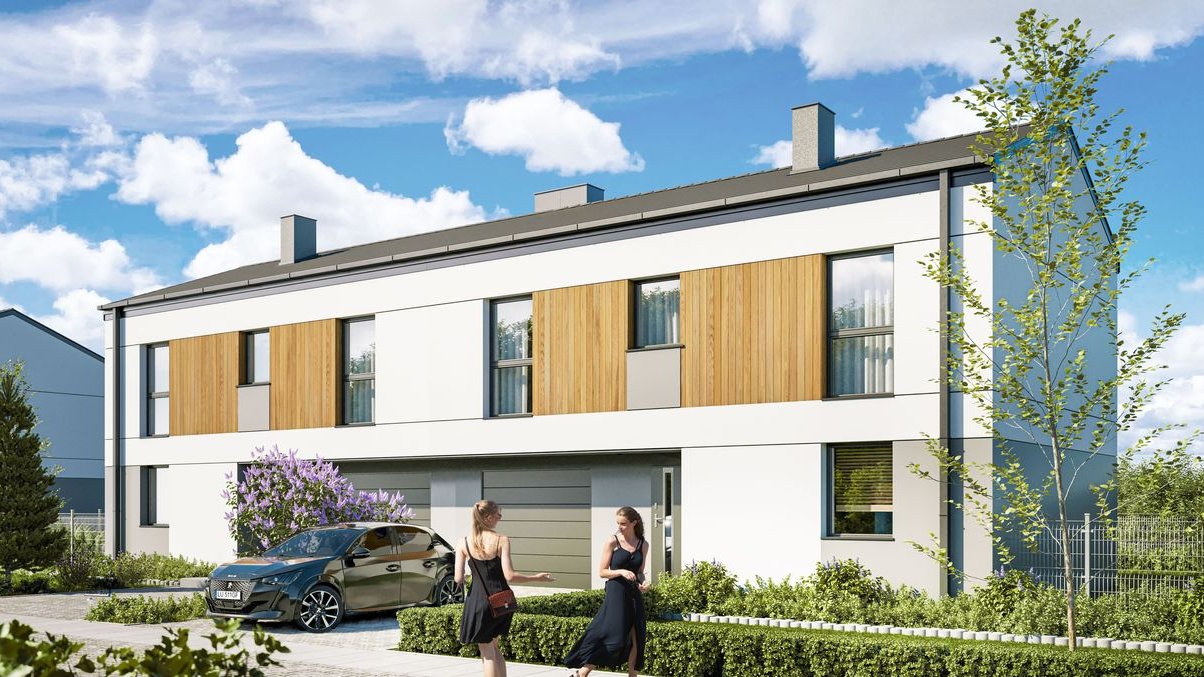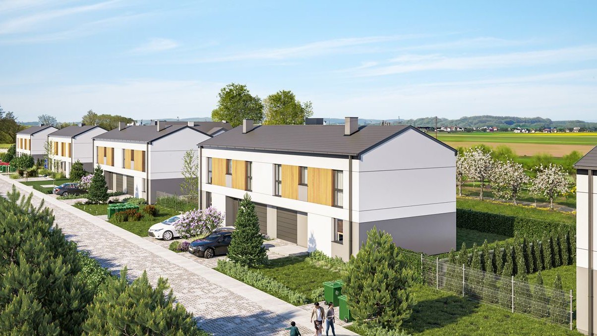 Powierzchnia: 108 m² z garażem, każdy dom z własnym ogródkiem i miejscem parkingowym.