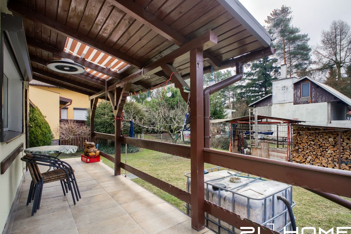 Przy domu znajduje się przestronny taras, który stanowi doskonałe miejsce do wypoczynku i spotkań na świeżym powietrzu.