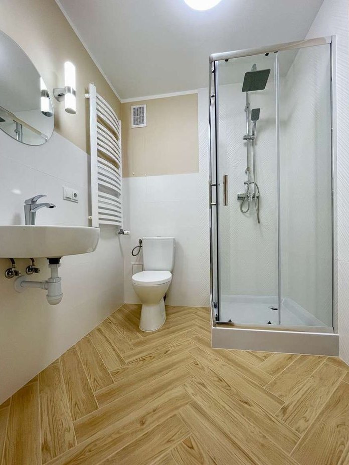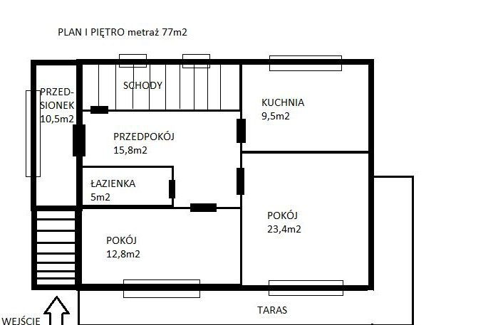 Piętro I zawiera: duży widny przedsionek, przedpokój, łazienkę z wanną i WC, gotową i w pełni wyposażoną kuchnie (nowe sprzęty AGD) oraz dwa pokoje. Balkony od zachodniej strony domu, z dostępem z obu pokoi.