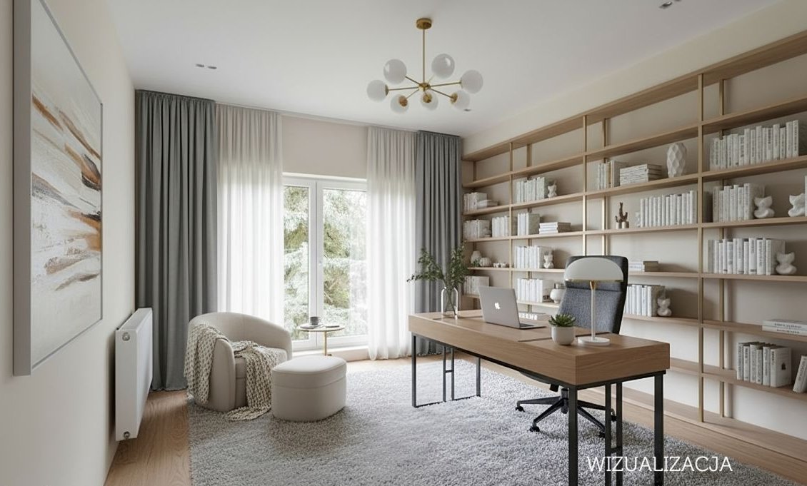 - Gabinet na parterze - oddzielna strefa pracy bez kompromisów, idealna do pracy zdalnej