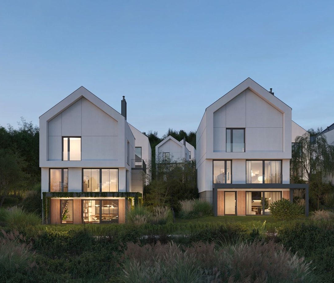 Na parterze każdego z budynków przewidziano hall wejściowy, toaletę, pokój dzienny z aneksem kuchennym.