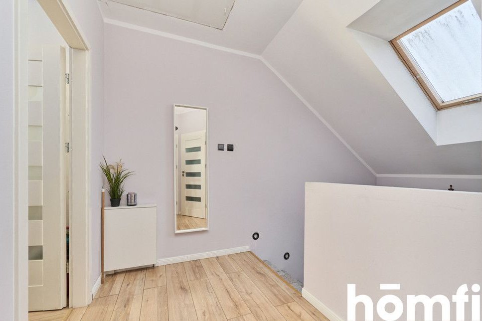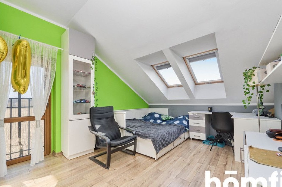 Na piętrze znajdują się trzy pokoje oraz druga łazienka.