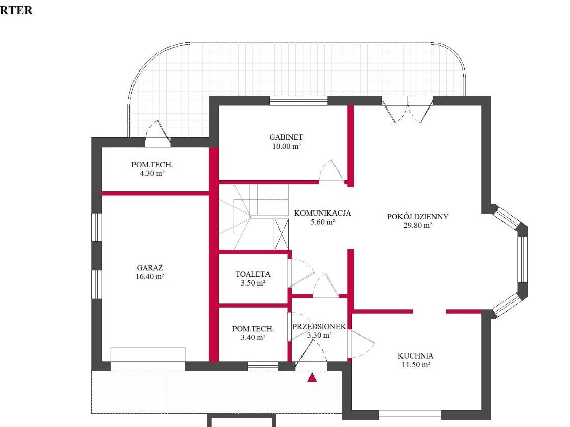 Centralną część domu stanowi przestronny salon połączony z jadalnią, który tworzy wygodną przestrzeń do wspólnego spędzania czasu. Duże okna zapewniają dobre doświetlenie wnętrza, a funkcjonalny układ pomieszczeń pozwala na komfortowe użytkowanie domu przez wszystkich domowników. Dodatkowy pokój na parterze może pełnić funkcję gabinetu, pokoju gościnnego lub sypialni.