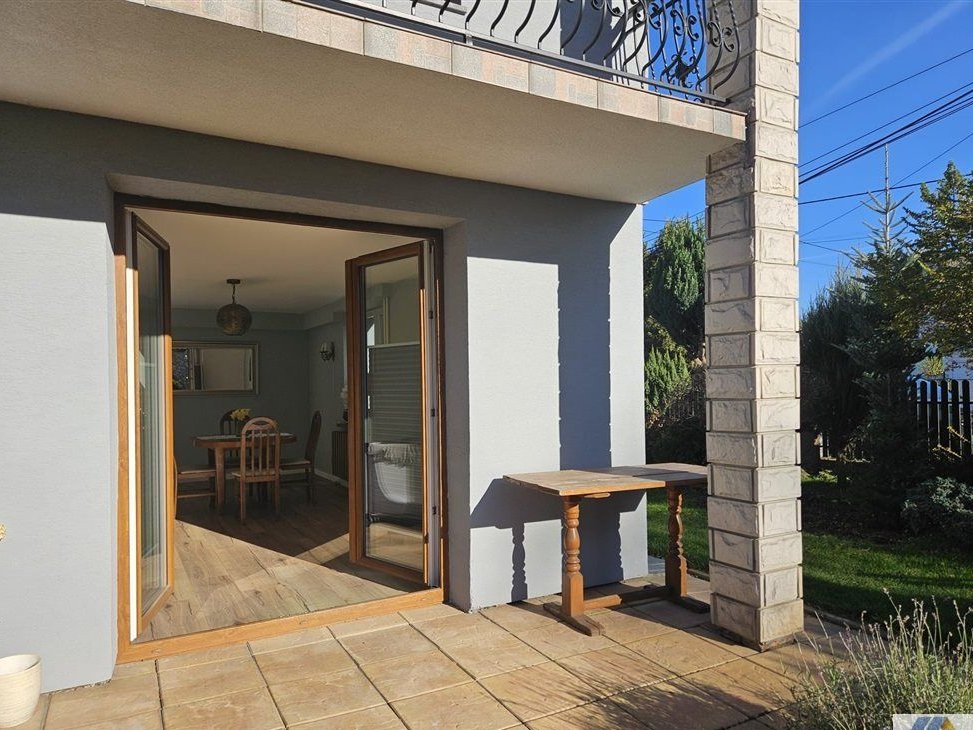 • przestronny salon z wyjściem do ogrodu