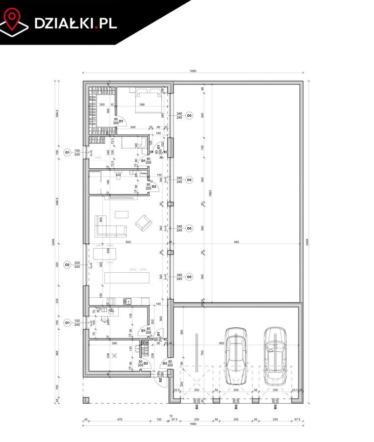 W bryle budynku znajduje się garaż z miejscem na trzy samochody, a przed nim dodatkowe miejsca postojowe.