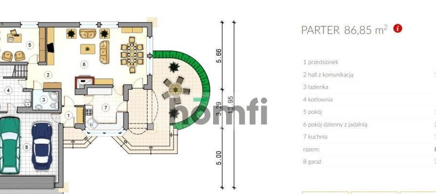 GROUND FLOOR (86.85 m² + garage 33.35 m²):
