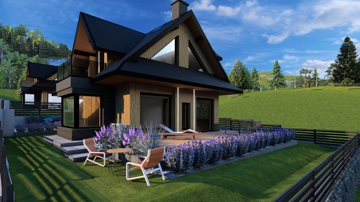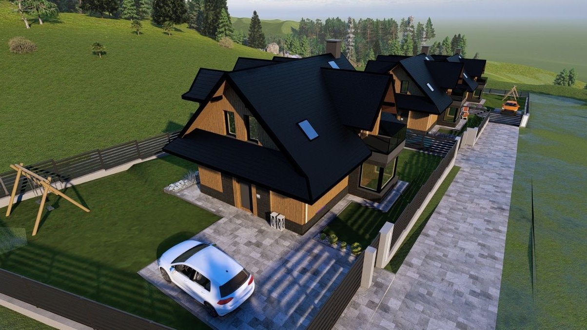 Przemyślany i funkcjonalny rozkład pomieszczeń domów. Na parterze znajduje się przestronna część dzienna, kuchnia otwarta na salon, z którego bezpośrednio można wyjść na taras i do ogrodu. Łazienka i pomieszczenie gospodarcze. Na piętrze znajdują się trzy sypialnie, jedna z nich posiada bezpośrednie wyjście na mały taras z którego rozpościera się niczym niezakłócony widok na Babią Górę, łazienka, korytarz prowadzący na balkon z zapierającym dech widokiem.