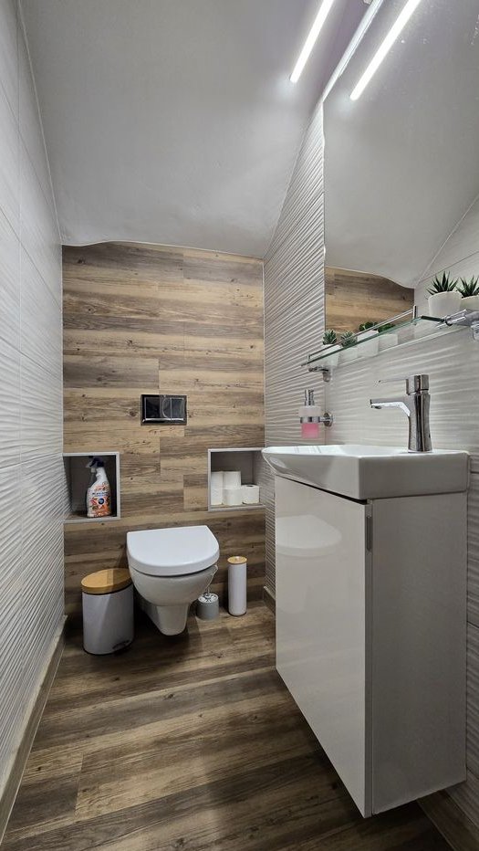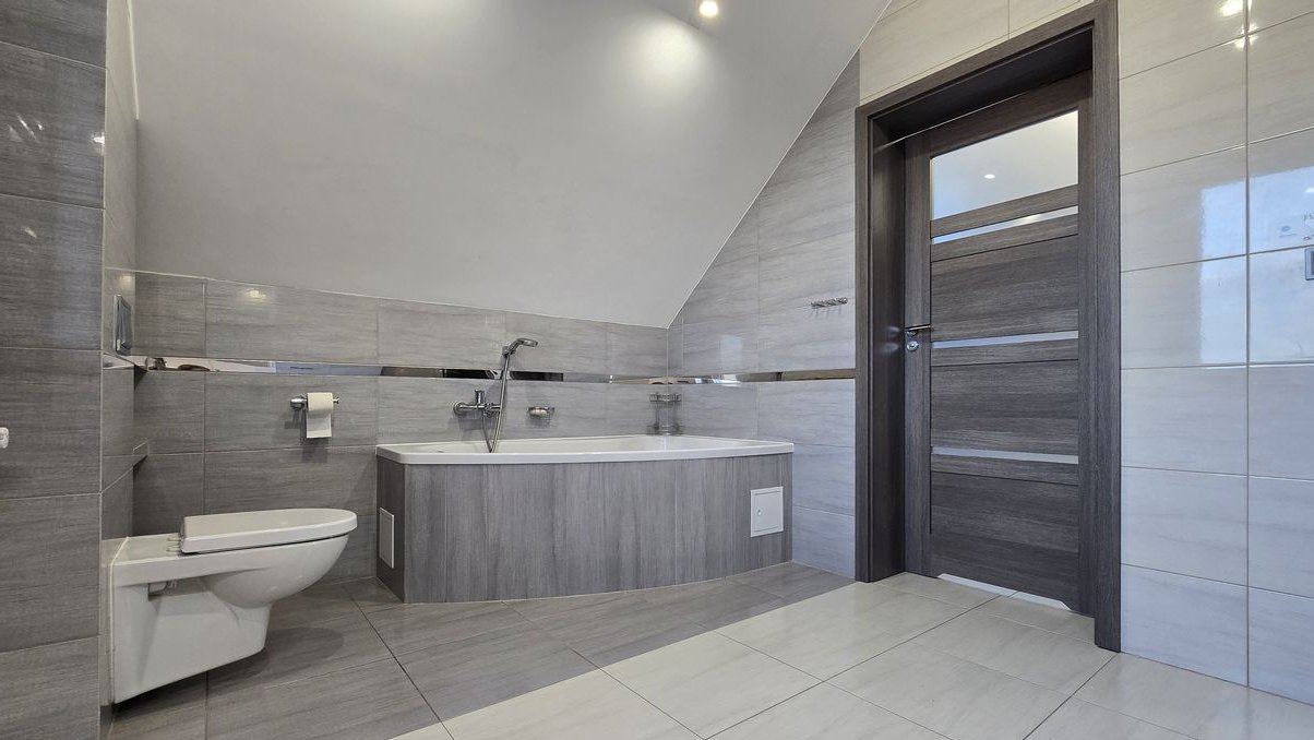 płytki w łazience na poddaszu i wiatrołapie,