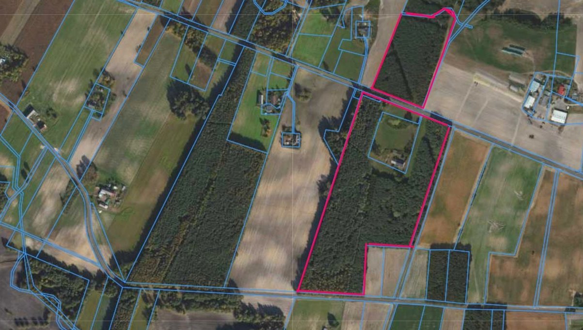Nieruchomość obejmuje działkę o powierzchni 96 arów, na której znajduje się parterowy dom mieszkalny oraz budynek gospodarczy. Dodatkowym, unikalnym atutem jest prywatny las o łącznej powierzchni 9,72 ha, który otacza zabudowania z każdej strony (częściowo również po drugiej stronie drogi). Las został posadzony około 30 lat temu i składa się głównie z sosny, brzozy oraz świerku. Istnieje też staw widoczny na filmie z drona jednak obecnie wymaga on prac porządkowych tak by nadawał się do np. ponownego zarybienia.