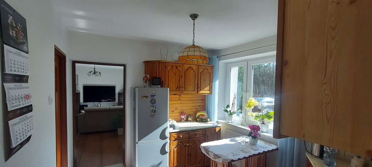 Dom mieszkalny o powierzchni zabudowy 166 m² jest budynkiem parterowym. W latach 2018–2019 połowa domu przeszła gruntowny remont. W jego ramach wykonano wzmocnienie konstrukcji dachu oraz położono nową blachodachówkę. Docieplono strop wełną mineralną, wymieniono instalację elektryczną, a ściany zewnętrzne ocieplono i wykończono nową elewacją. Wymienione zostały również okna i grzejniki. W części mieszkalnej przeprowadzono kompleksowy remont wnętrz obejmujący przedpokój, przestronny salon, sypialnię oraz łazienkę.