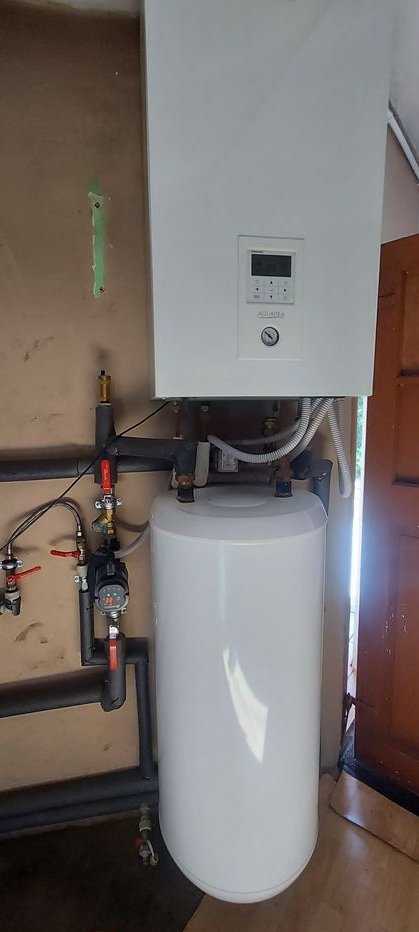 W budynku zainstalowano nowoczesne ogrzewanie w postaci pompy ciepła powietrze–woda o mocy 10 kW, która odpowiada za ogrzewanie wyremontowanej części domu oraz przygotowanie ciepłej wody użytkowej.