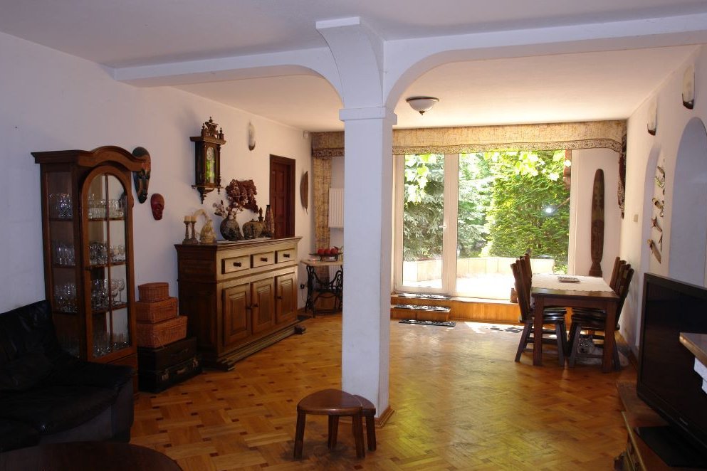Przestronny dom wolnostojący w spokojnym sąsiedztwie domów jednorodzinnych na dużych działkach, chronionych Miejscowym Planem Zagospodarowania Przestrzennego.