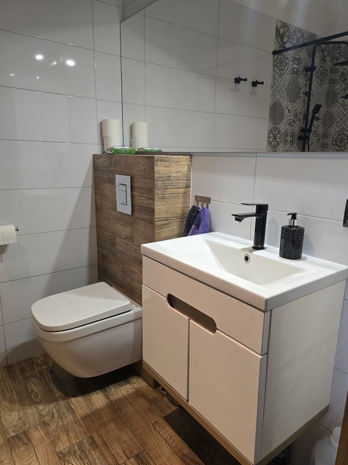 - podłogi na parterze i w łazience głównej wykończone gresem, w sypialniach panele,