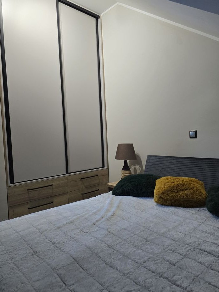 - sypialnia główna z zabudową stolarską (2 duże szafy garderobiane, stoliki nocne wykonane na wymiar, okucia i akcesoria Blum, Zobal),