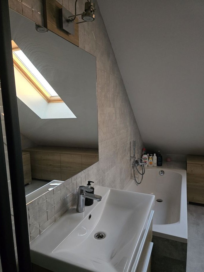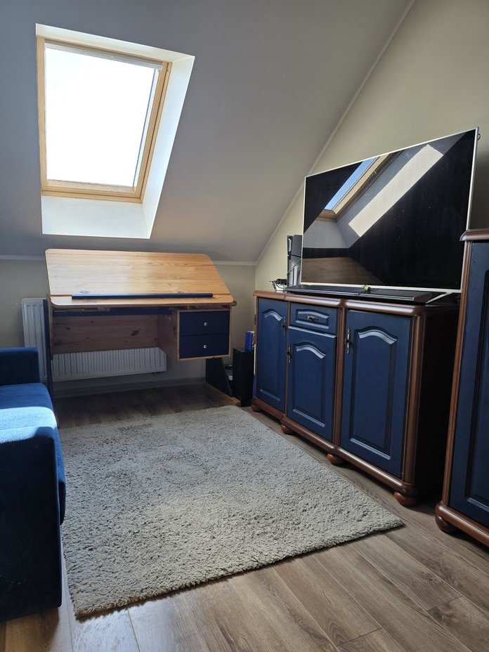 PIĘTRO: sypialnia główna, sypialnia dla dziecka, pokój gościnny/gabinet, duża łazienka z wanną i kabiną prysznicową oraz szafkami na wymiar.
