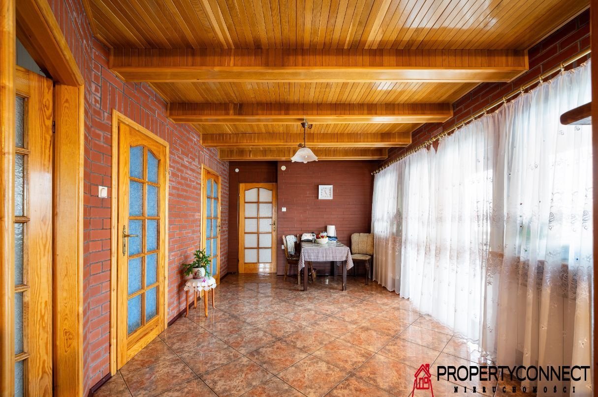 Fundamenty i ławy fundamentowe z betonu. Mury zewnętrzne z gazobetonu grubości 42cm, ściany wewnętrzne konstrukcyjne z gazobetonu grub. 25cm, ścianki wewnętrzne grub. 12cm. Stropy nad przyziemiem i piętrem z płyt wielokanałowych. Strop nad poddaszem na belkach drewnianych o wym. 14x20cm ułożone co 1m. Kominy wykonane są z cegły pełnej. Stolarka okienna i drzwiowa drewniana. Schody wewnętrzne żelbetonowe. Na podłodze terrakota a w pokojach panele drewniane.. Dach konstrukcji drewniany pokryty blachodachówką. Instalacja elektryczna (rozdzielnica) – nowa. Dom ogrzewany jest kotłem kondensacyjnym dwufunkcyjnym firmy Vaillant atmoTEK plus 28 kW.