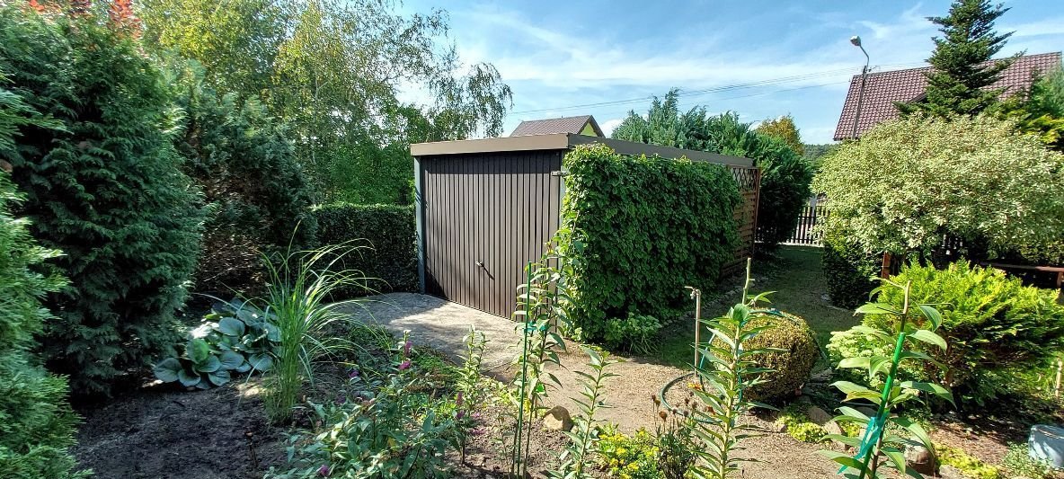Na działce znajduje się wolnostojący garaż zagospodarowany na budynek gospodarczy: przechowalnie opału, narzędzi ogrodniczych, rowerów, itp. Do domku przylega wiata na auto.
