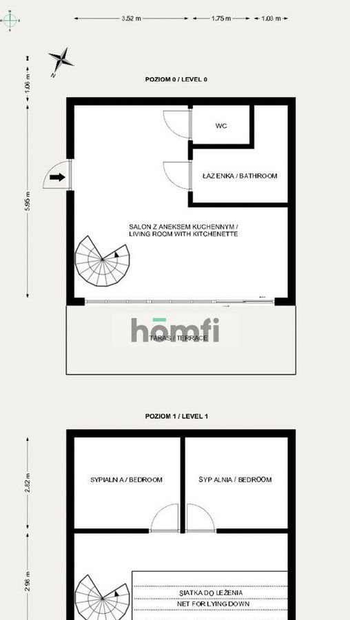 • piętro: 2 sypialnie + siatka do leżenia na antresoli
