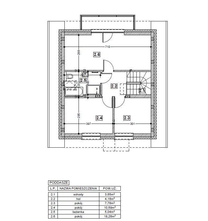 • pokrycie: dachówka ceramiczna, okna dachowe FAKRO, rynny PCV