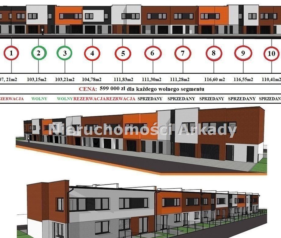 Segmenty są w zabudowie szeregowej ale każdy z nich różni się bryłą, kolorem i powierzchnią, wszystkie razem tworzą nowoczesną architektonicznie i spójną kompozycję.