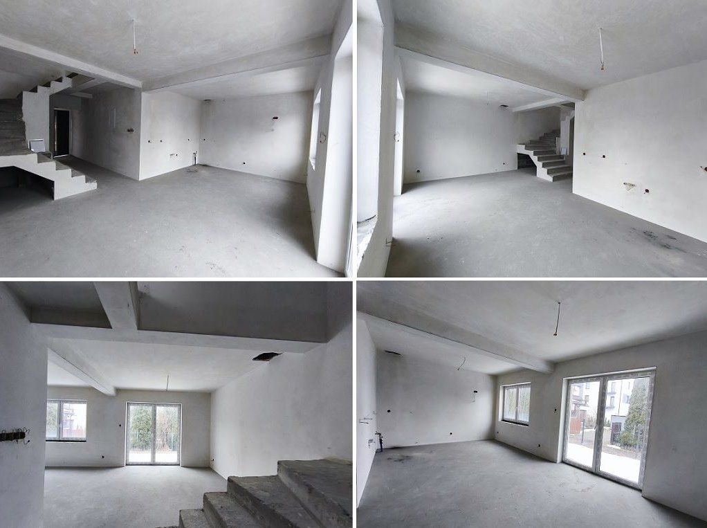 wykonanie wszystkich instalacji podtynkowych, wylewki betonowe, tynki gipsowe wewnątrz na ścianach i sufitach ( za wyjątkiem sufitów podwieszanych na piętrze – wykończenie płytą w technologii karton-gips.