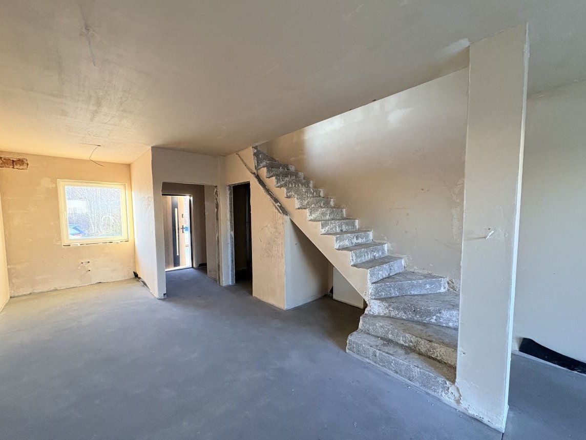 Tynki wewnętrzne gipsowe maszynowe, okna PCV pięcio-komorowe,trzyszybowe, schody betonowe.