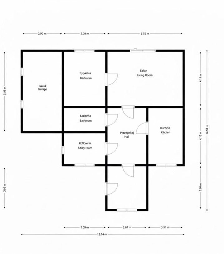 On a 3,600 m² plot, there is a single-family house in an open-plan shell, with an area of approximately 170 m². The building was designed with functionality and the comfort of its future residents in mind. A garage also fits into the building, enhancing the comfort of its occupants. The large plot offers a wide range of design options—from a garden to additional recreational buildings. The house's design allows for a full interior design tailored to your needs and taste.