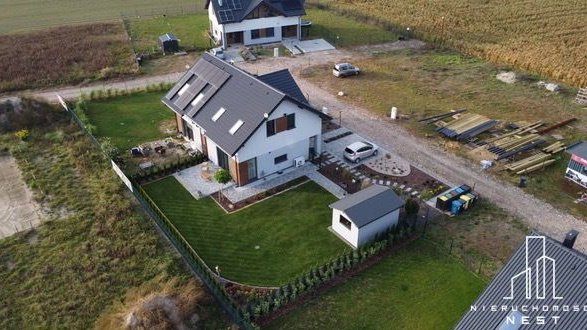 - wybudowane w technologii tradycyjnej z pustaka ceramicznego 24cm, ocieplone styropian grafitowy15 cm, dachówka cementowa,