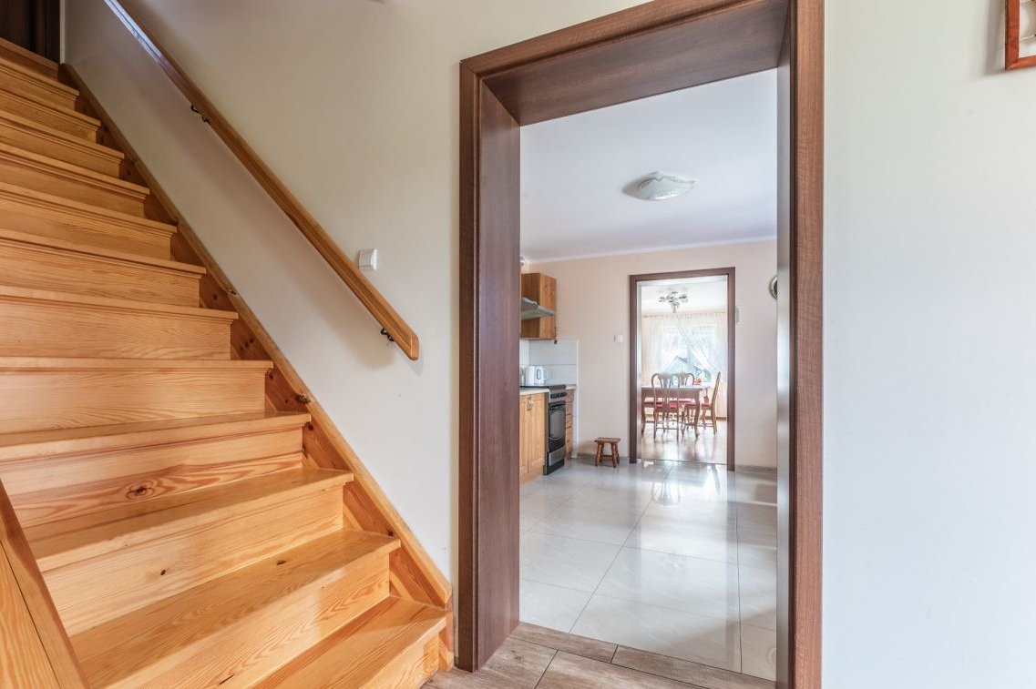 Do domu prowadzą dwa wejścia, od strony podwórza jest weranda 11,6 mkw