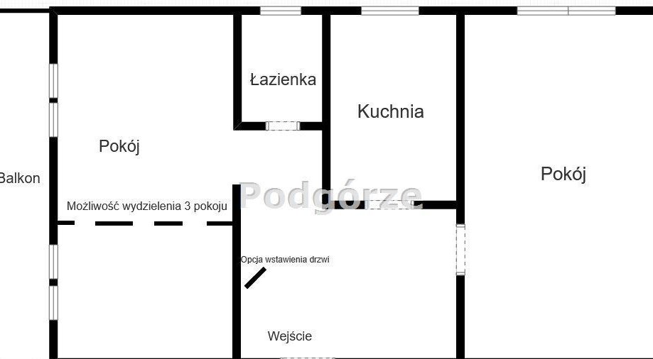 - w łatwy sposób poprzez postawienie ścianki w jednym pokoju można uzyskać trzeci pokój (oryginalnie były 3 pokoje)