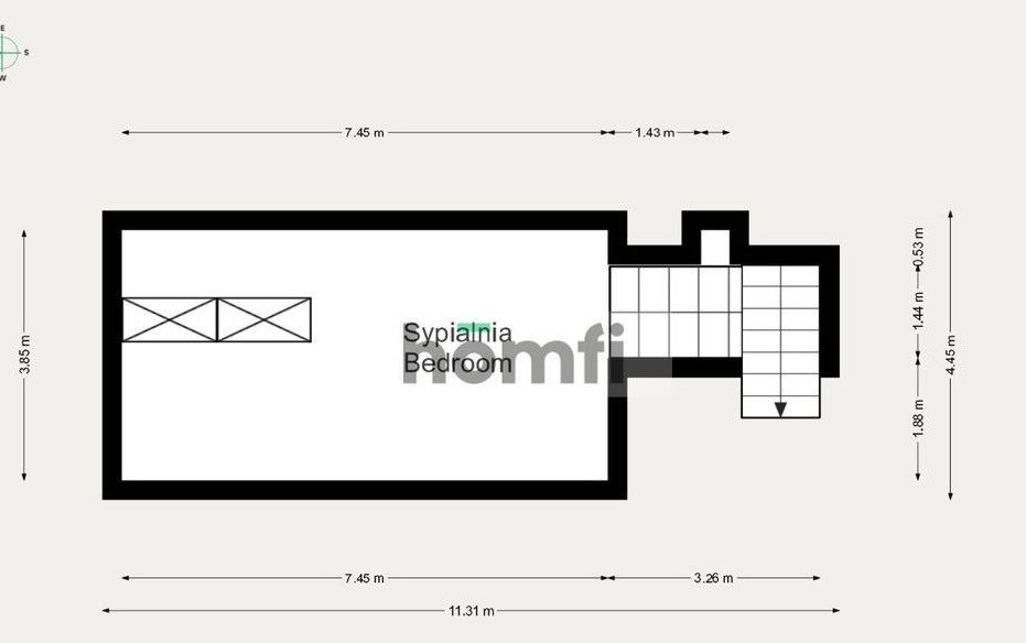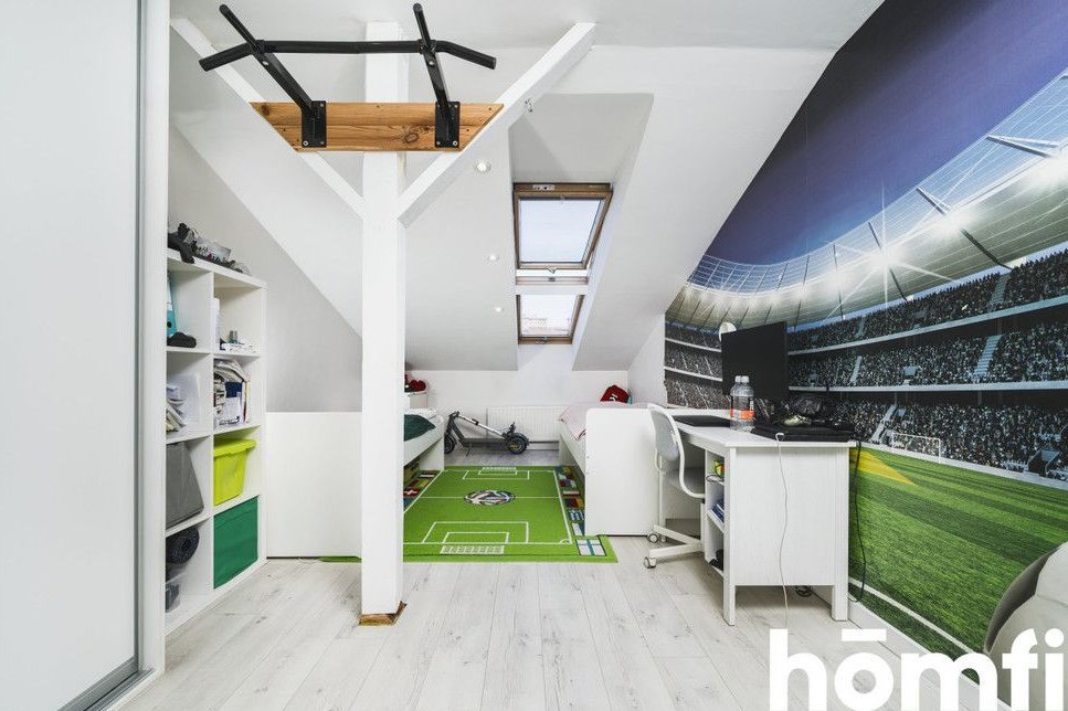 Po drugiej stronie sypialnia małżeńska. Na poddaszu znajduje się drugi pokój.