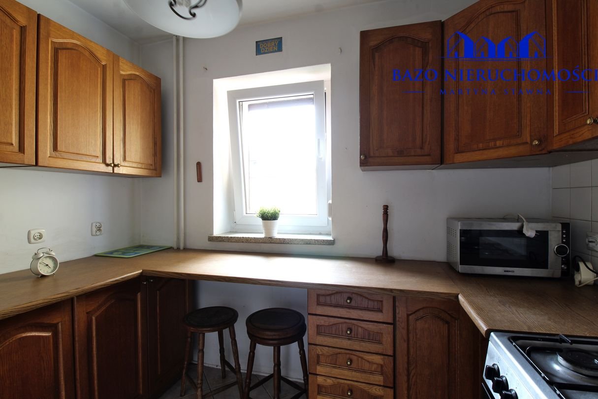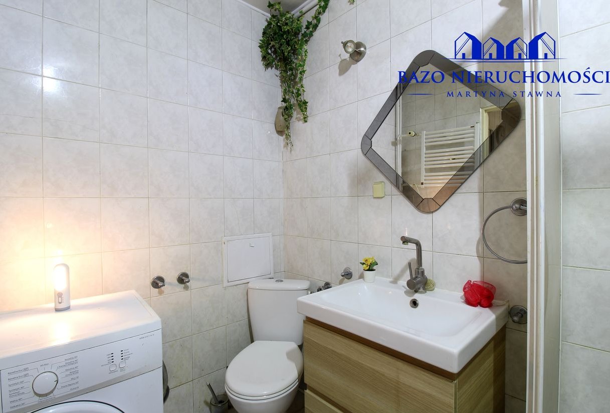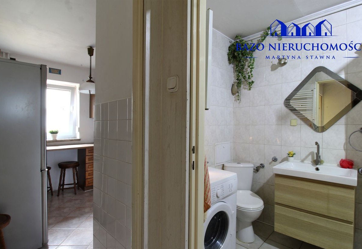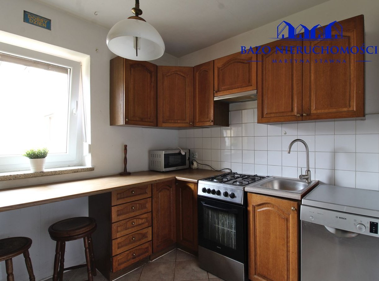 Kuchnia posiada zabudowę meblową oraz sprzęt AGD w cenie. W łazience znajduje się kabina prysznicowa oraz pralka.
