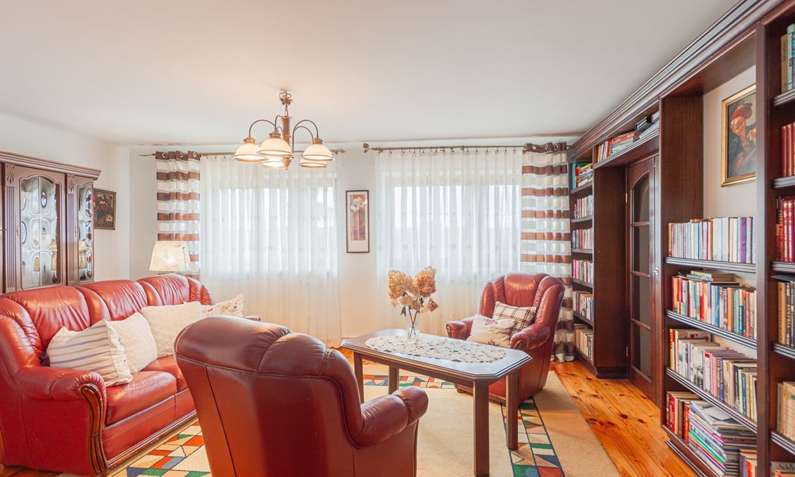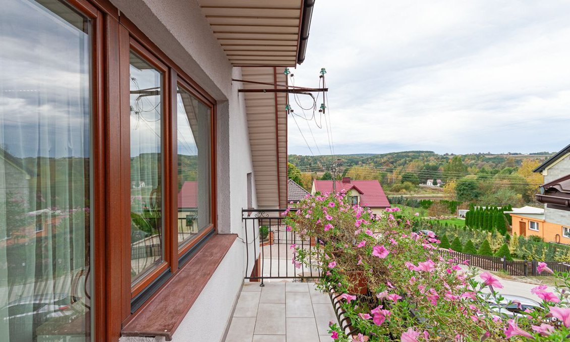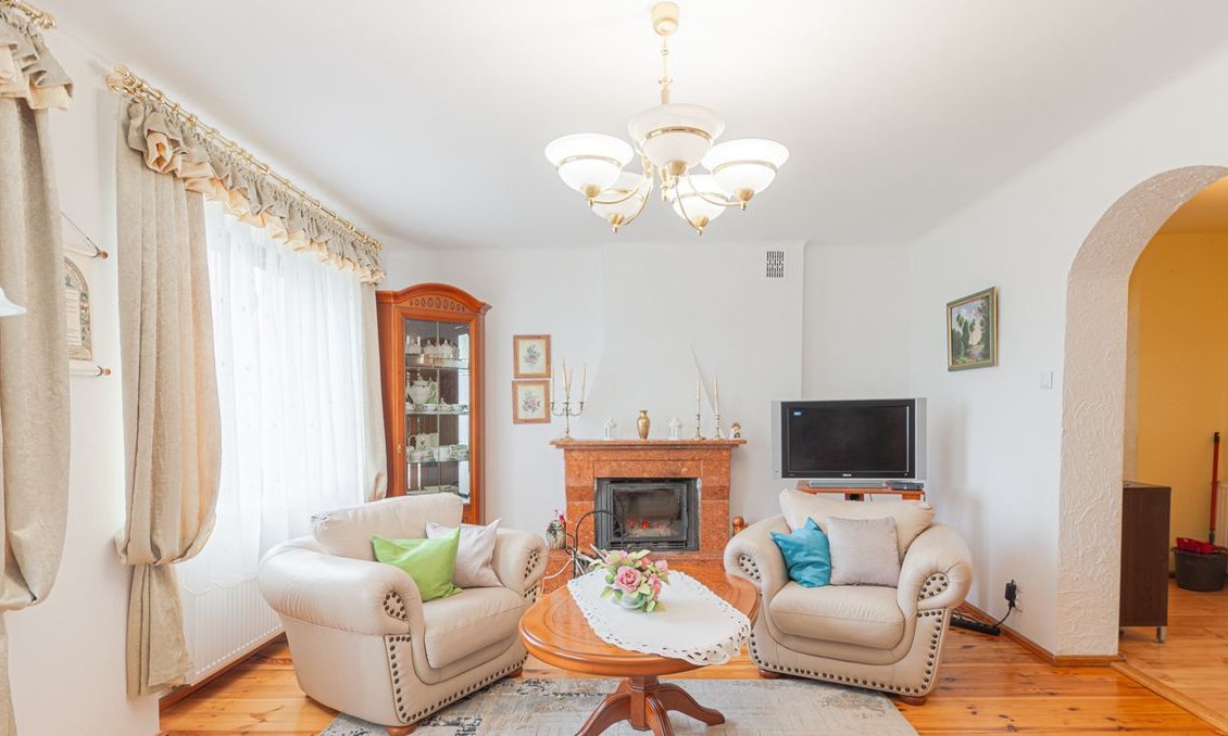 Dom składa się z 7 pokoi (w tym duży salon z kominkiem), kuchni, łazienki, 2 WC, dużego garażu, pomieszczeń gospodarczych balkonu. Nieruchomość w bardzo dobrym stanie technicznym.
