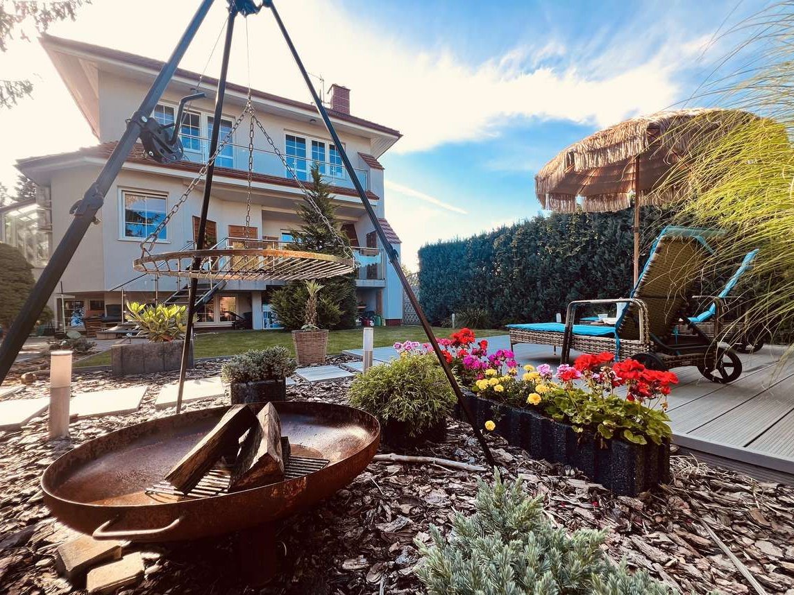 Z salonu wyjście na ogród zimowy o wymiarach 31m2 i zadaszony taras z wbudowanym grillem o wymiarach 16m2