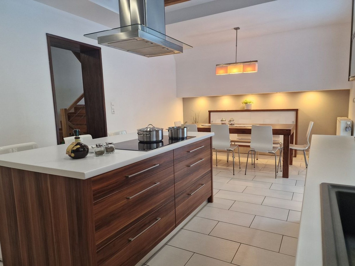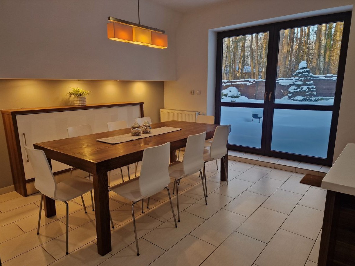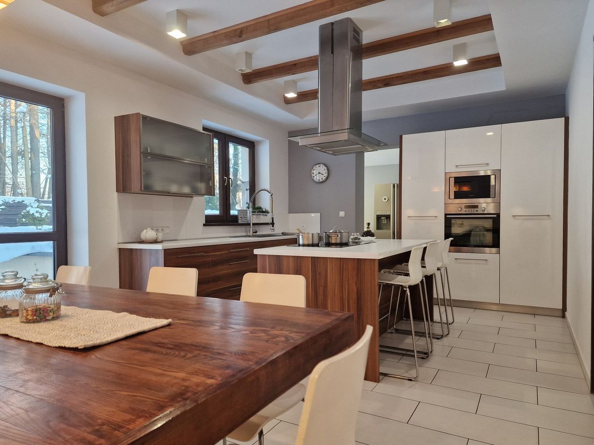 kuchnia ze spiżarnią i wyjściem na taras z widokiem na las,