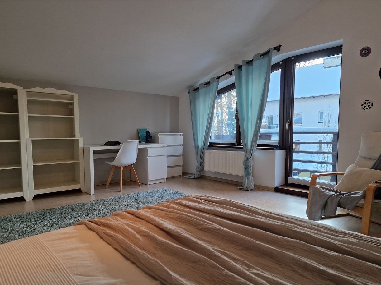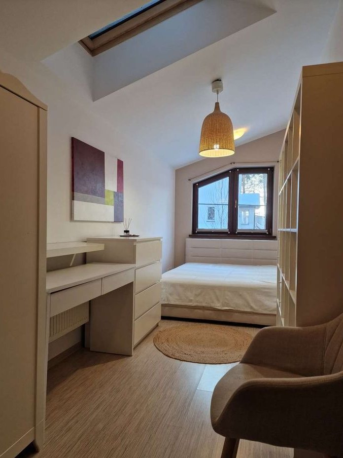 2 pokoje, w tym jeden z wyjściem na balkon.