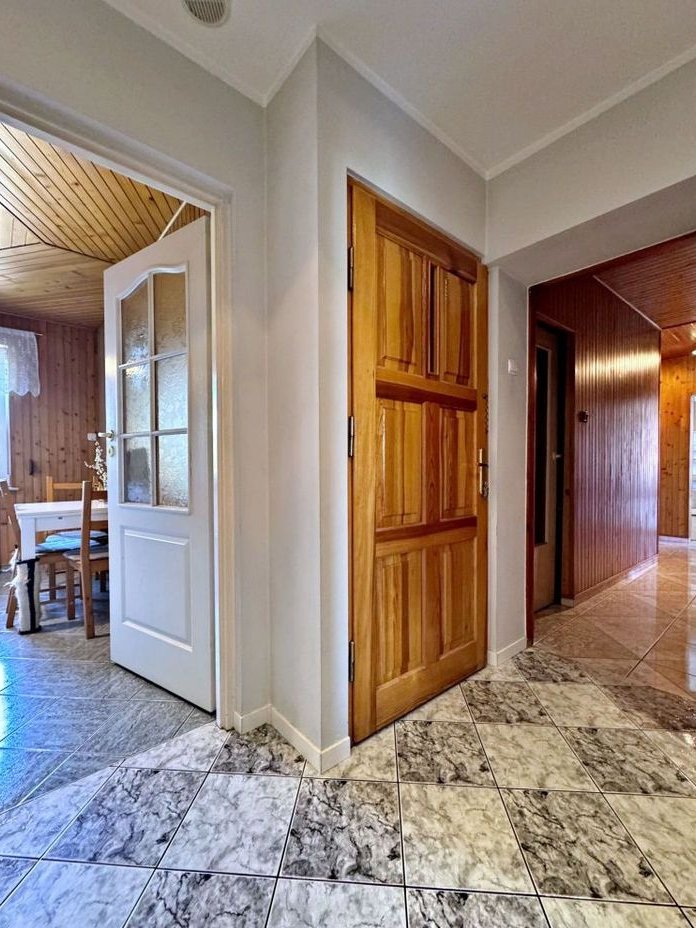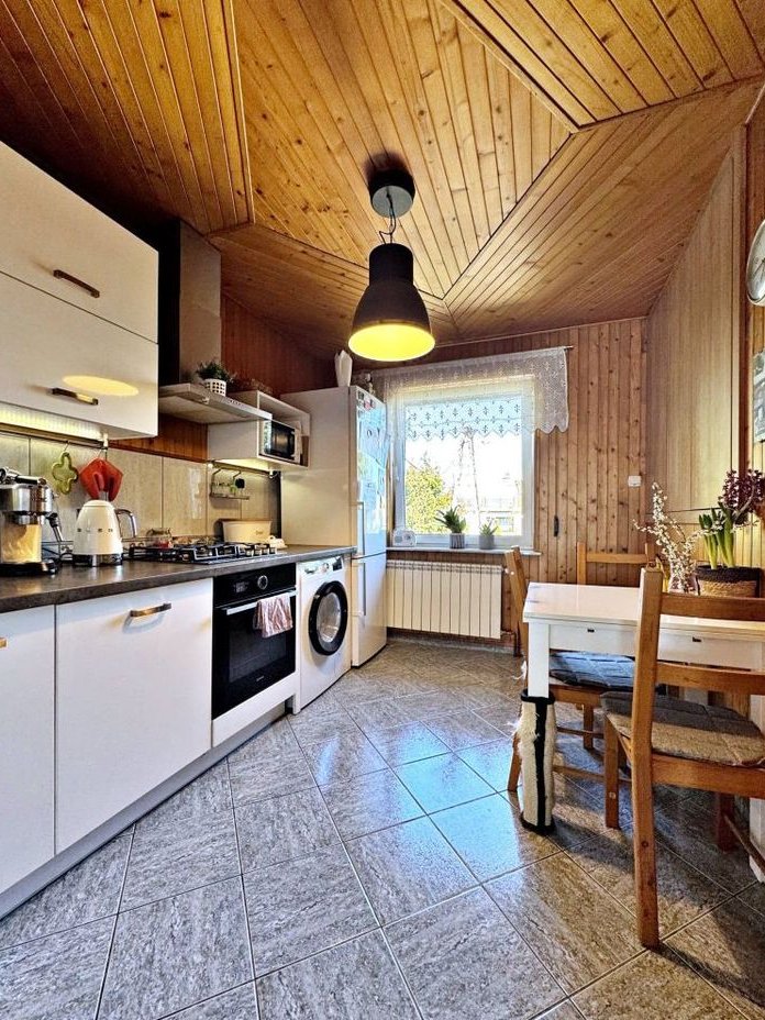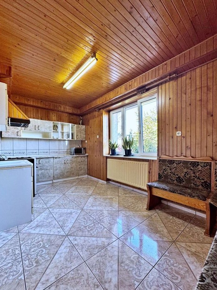 Budynek ocieplony, wzniesiony w latach 80, rozbudowywany w latach dwutysięcznych. Wykończenie zgodnie ze zdjęciami. W części okien zamontowane rolety zewnętrzne. Automatyczna brama garażowa (garaż na dwa auta). Wszystkie okna PCV. Jedno z mieszkań na piętrze po remoncie.